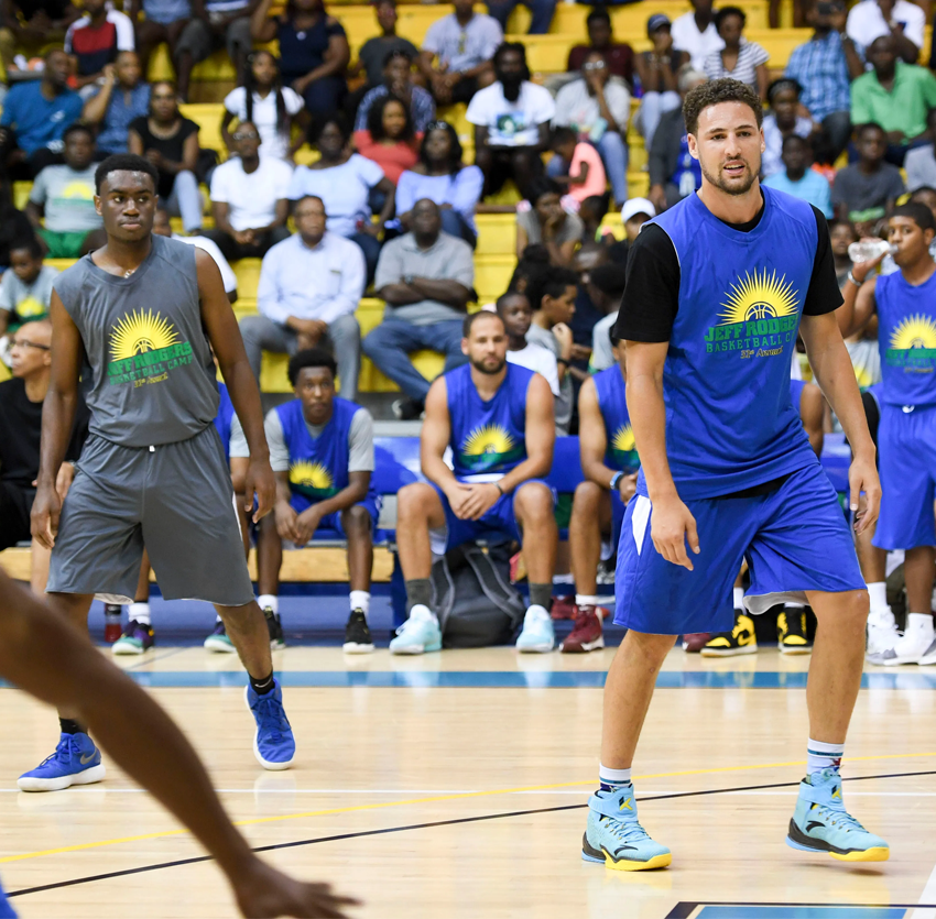 Klay Thompson, is a four-time NBA champion, and a five-time NBA All-Star. A Dallas Mavericks player and formerly of the Golden State Warriors, he and his family, including his father Mychal Thompson and brother Mychel "MJ" Thompson, have been regular attendees and participants in the Jeff Rodgers Summer Basketball Camp in Nassau, Bahamas, for many years.